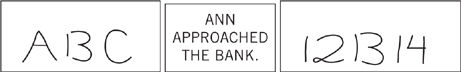 What do the three exhibits in figure 6 have in common? The answer is that all are ambiguous. You almost certainly read the display on the left as A B C and the one on the right as 12 13 14, but the middle items in both displays are identical. You could just as well have read them as A 13 C or 12 B 14, but you did not. Why not? The same shape is read as a letter in a context of letters and as a number in a context of numbers. The entire context helps determine the interpretation of each element. The shape is ambiguous, but you jump to a conclusion about its identity and do not become aware of the ambiguity that was resolved.